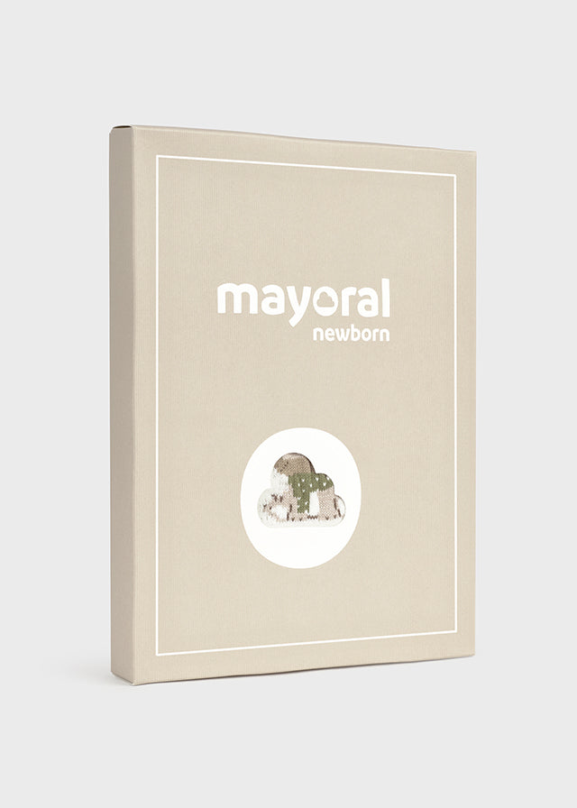 Este conjunto tricot de dos piezas para recién nacido incluye un jersey de manga larga con cuello redondo y botones en el hombro para facilitar el vestir. Elaborado en tejido de punto tricotosa suave, presenta delicados dibujos en punto jacquard. La polaina cuenta con pies incorporados, cinturilla elástica y funcionales bolsillos delanteros, con una doble cinturilla en tallas pequeñas para mayor ajuste. Confeccionado en algodón asociado a la iniciativa Better Cotton, combina comodidad, cuidado y compromiso con la sostenibilidad. Ideal para ofrecer calidez y libertad de movimiento al bebé desde sus primeros meses.