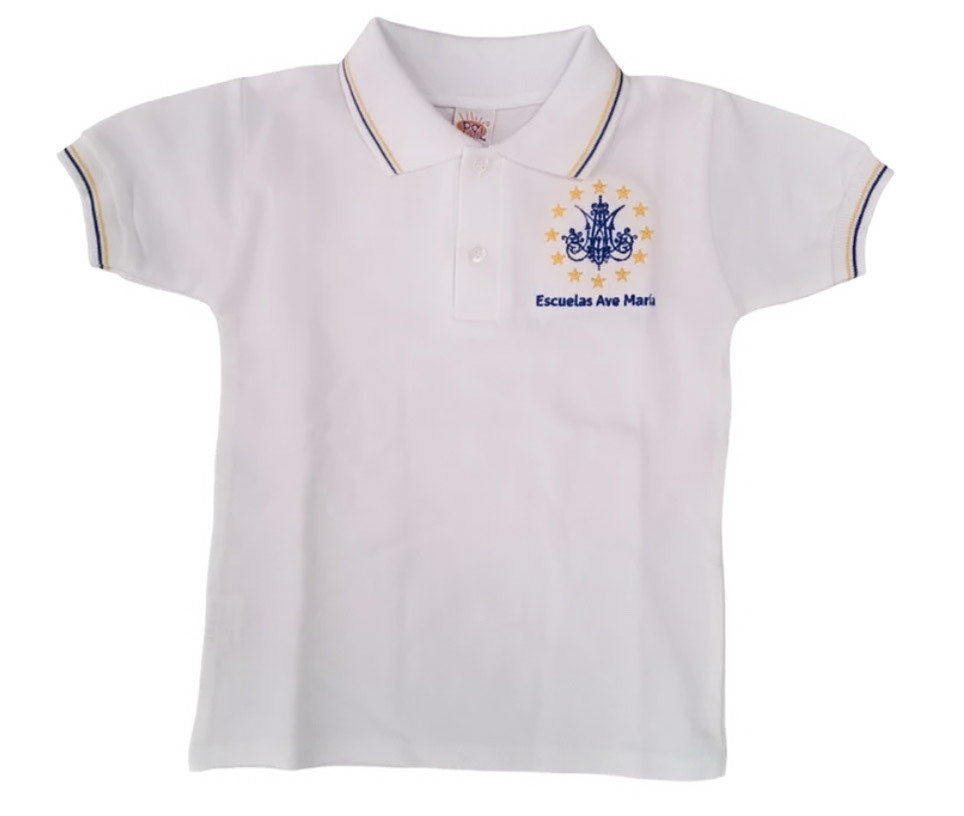 Esta camisa polito de manga corta es parte del uniforme del colegio Ave María. Hecho con materiales de alta calidad, es cómoda y duradera para usar durante todo el día. ¡Haz que tu hijo se vea y se sienta bien mientras asiste a la escuela con esta camisa!
