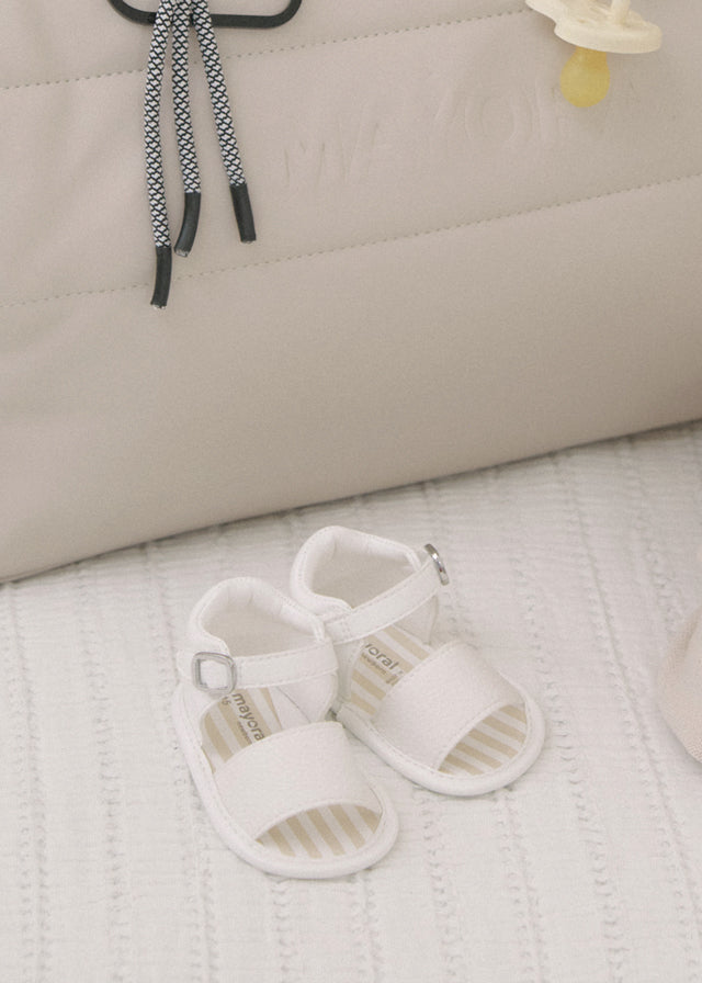Estas sandalias blancas sin suela son perfectas para bebés. Sin la suela, proporciona una mayor flexibilidad y movilidad para los pequeños pies. Además, su diseño blando y cómodo protege al bebé de cualquier posible rozadura. Hechas para una comodidad duradera.